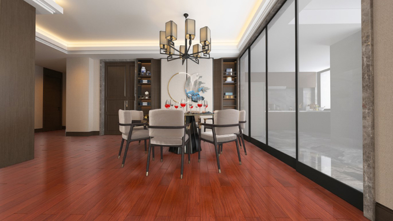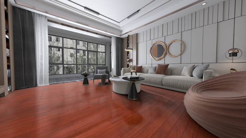 把满载吉祥幸运的红檀香地板,铺到居室内,如同一副华美画卷,传递着吉象的力量,更显尊贵。